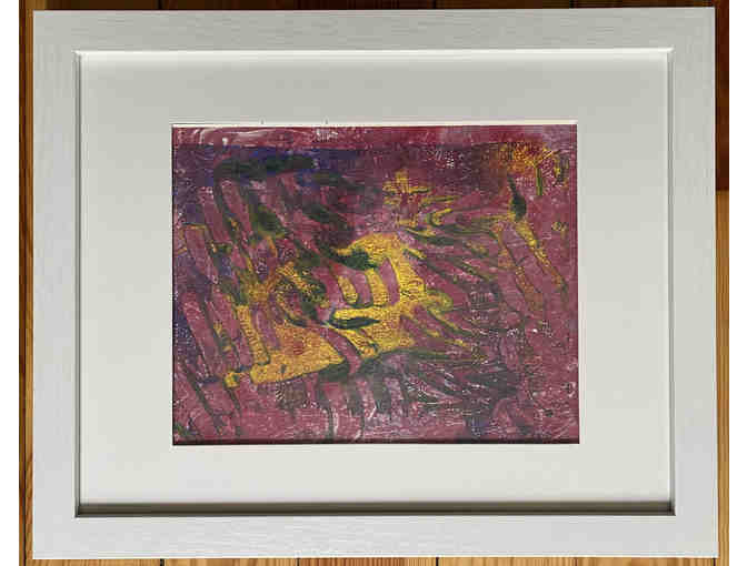 Enjoy this vibrant, contemporary art piece made by a Perkins' Lower School student. This fantastic piece of artwork comes with a rustic frame, ready to hang in any room of your house.