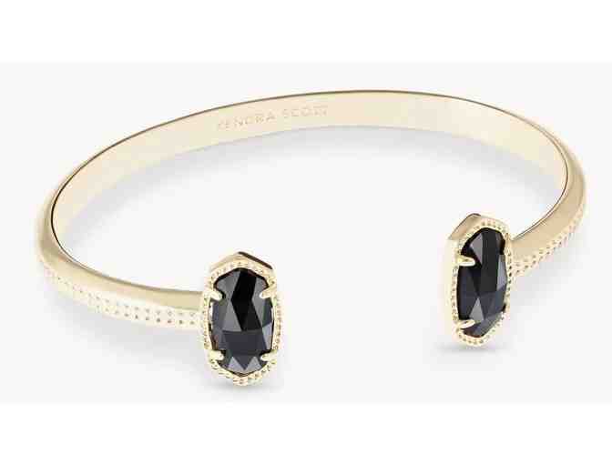 A dainty pinch cuff bookended with Kendra Scott's signature oval stones, the Elton Gold Cuff Bracelet in Black Opaque Glass is a stack staple. This beautifully designed gold cuff bracelet is guaranteed to turn heads every time you wear it. No matter the size of your wrist, the Elton Cuff Bracelet is sure to fit you and your style since it is adjustable - simply bend the cuff to open when you put it on and then squeeze to the desired tightness.