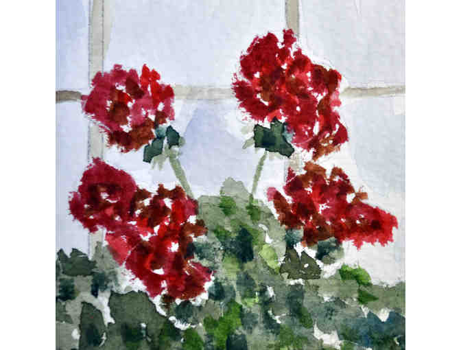 Watercolor - Geraniums In A Pot - Matted/Unframed - Original by Marlene Koch