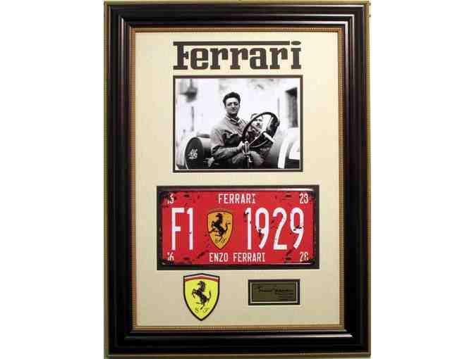 Replica Ferrari License Plate with Photograph of Enzo Ferrari Framed Collage