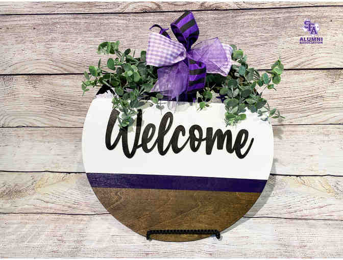 This 15" decorative purple/black round door hanger adds a special touch to any door it is on. It's always a great day to be a Lumberjack; use it to decorate during any season!