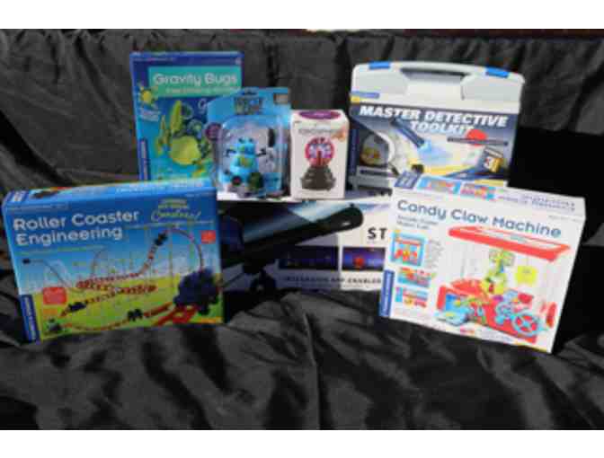 Brillant Sky Toys and Books is helping you do your holiday shopping! This STEM toy collection including: Explore Scientific 50 MM refractor telescope, Gravity Bugs Free Climbing Microbot Set, Tracer-bot lonosphere electromagnetic wave generator, Roller Coaster Engineering Set, Candy Claw Machine Arcade Game, Maker Lab Master Detective Toolkit