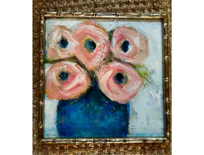Martha Case Nemer Fine Art “Just Peachy” 12x12 mixed media piece finished in oil, professionally framed by Anne The Framer