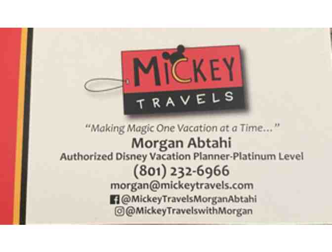 Restrictions: Must be used towards a trip purchased through Morgan Abtahi with MickeyTravels. The package must include both accommodations for a minimum of 3 nights and park tickets for a minimum of 3 days. The credit can also be applied toward any Disney cruise.
