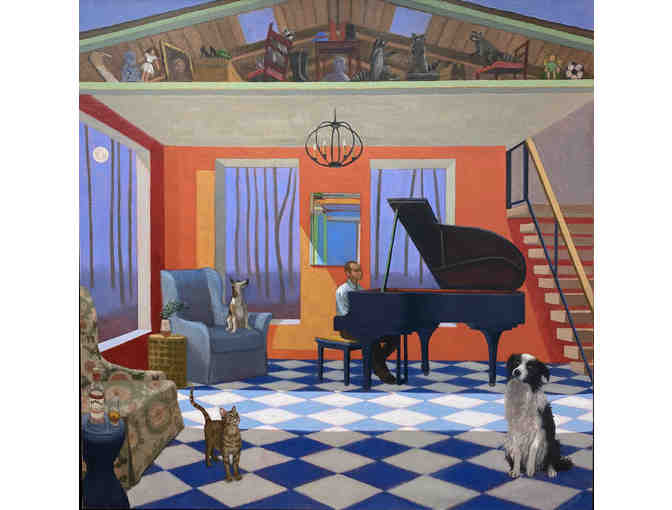 After the Peaceable Kingdom paintings, Freeman turned away from streets and parks and went back to one of her favorite subjects, the narrative interior, or what she calls ?the painted story. In 1998, Freeman had another solo exhibition at the Tatistcheff Gallery that was titled ?Sense and Sensibility.? Works that were included in this show are, Piano Lessons, Arbor Day, and Full Moon.