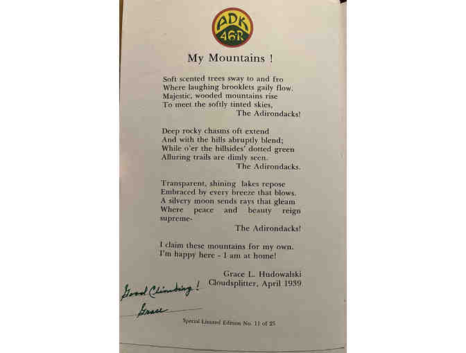 The Adirondack High Peaks and the Forty-Sixers 1971 2nd Ed. Edited/Special Limited Ed. autographed by Grace Hudowalski.