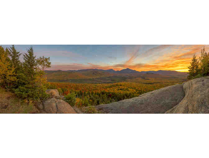 A stunning Carl Heilman II archival panorama print, Sunset Over the High Peaks from Mt Van Hoevenberg, measuring 12" x 36" and ready to frame. Hand-signed and just taken this fall.