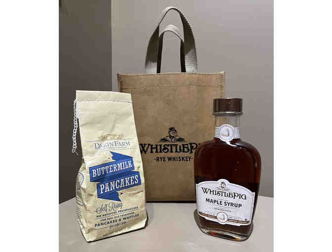 Whistle Pig 375ml maple syrup and pancake mix in a Whistle Pig gift bag.