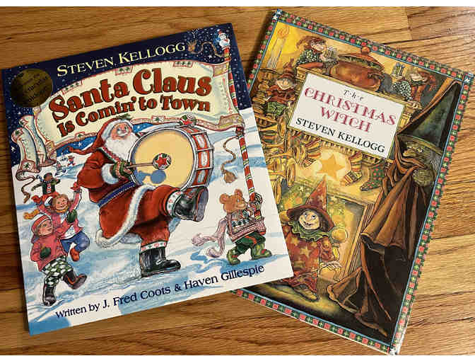 The Christmas Witch (hardcover) and Santa Claus is Coming to Town (hardcover) by Steven Kellogg. Signed copies with special doodle for your little one!
