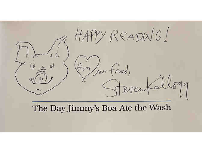 Three Little Pigs (hardcover) and The Day Jimmy's Boa Ate the Wash (hardcover) by Steven Kellogg. Signed copies with doodles!