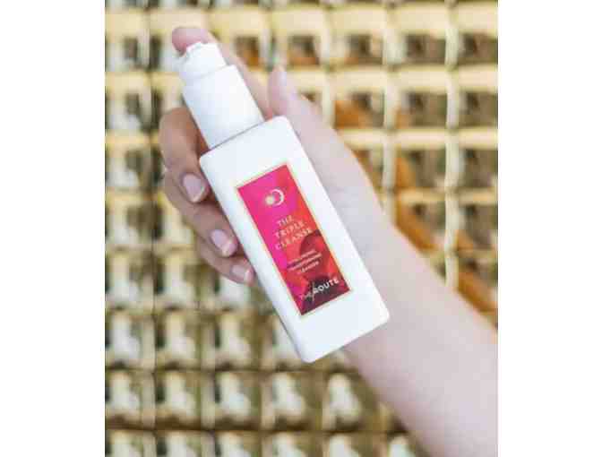 Gently and thoroughly cleanse leaving the skin healthy and hydrated with The Triple Cleanse from THE ROUTE. Designed to go from a cream, oil to a milk texture, this unique cleanser features a blend of hyaluronic acids, ceramides and shea butter to melt makeup, gently cleanse and lightly hydrate while supporting a healthy skin barrier, skin pH and skin microbiome.