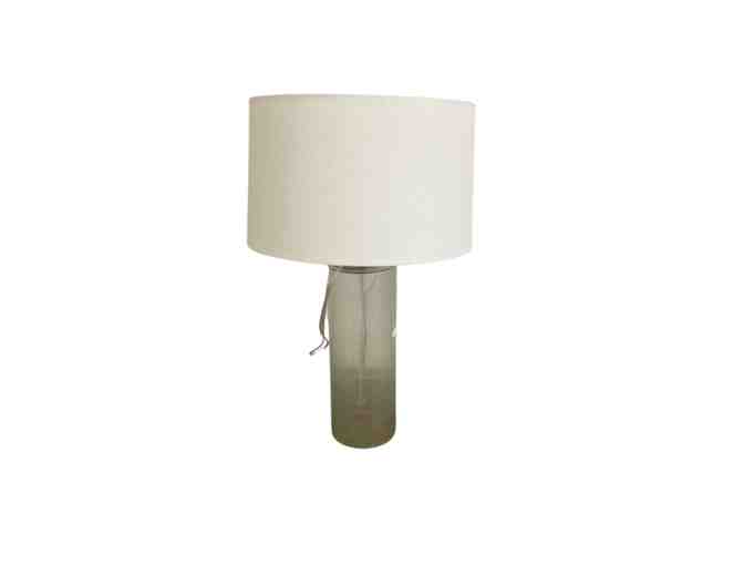 29" Clear Etched Lamp Base with Cylindrical Linen Shade