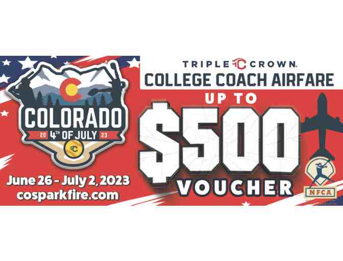 College Coach Airfare Voucher: Up to $500 airfare voucher to attend the 2023 Colorado 4th of July tournament, June 26-July 2.