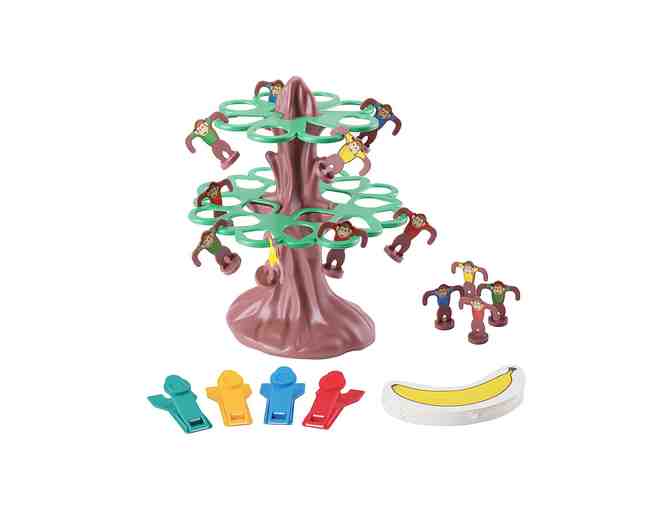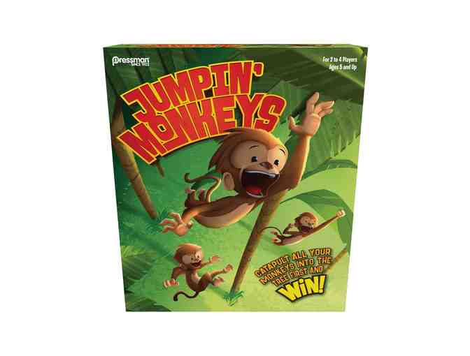 This adorable game will have you jumpin' for fun! Be the first player to catapult all of your monkeys into the tree and get a bunch of bananas! The player with the most bananas after 4 rounds of play wins. For 2-4 players, ages 5 and up.