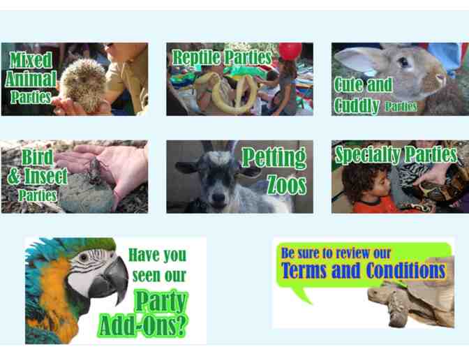 This is our most popular animal birthday party package! It is a mixed party that will come with 12 different animals and lasts one hour. You will see mammals, reptiles, amphibians, insects, and birds.