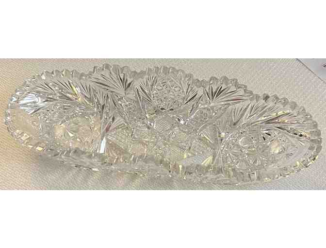 A very pretty and detailed piece. There are no large cracks or obvious repairs and is still in excellent condition for using at set tables.There are some chips from regular ware and tear that you would expect of 40+ year old serving dish. There is no maker's mark.