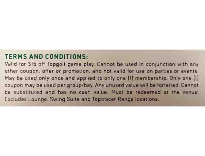 $15 off game play at Topgolf in San Jose. Please see photo for details.