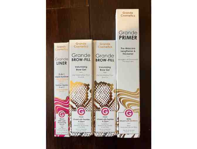 Grande Cosmetics is a cult favorite beauty brand with breakthrough, salon-service inspired DIY formulas that empower women to embrace their own natural features. Package includes 2-in-1 Liquid Eyeliner, 2 Brow-Fill Volumizing Brow Gels, and Primer Pre-Mascara Lengthener and Thickener.
