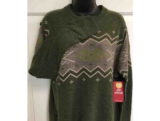 Men's Sherpa Yeru Crew Sweater, Evergreen (viscose/nylon/merino wook/alpaca blend). Size L.