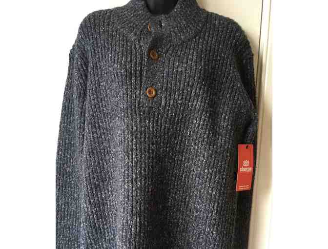 Men's Sherpa Ranga Button Mock Neck Sweater, Blue (poly/acrylic/cotton/merino blend) Size L.