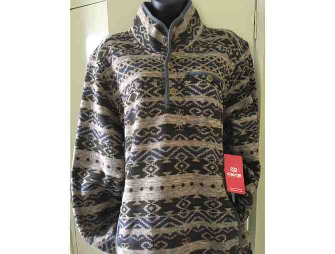 Men's Sherpa Lumbini Fleece Pullover, Rathee Blue Multi (Polyester Sweater Fleece) Size L.