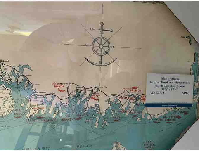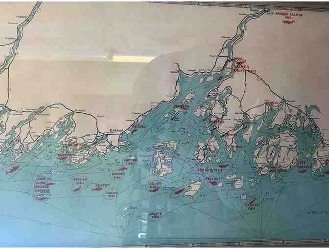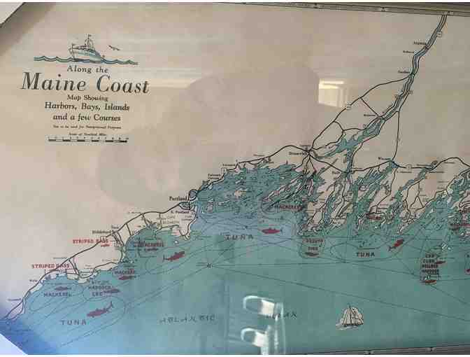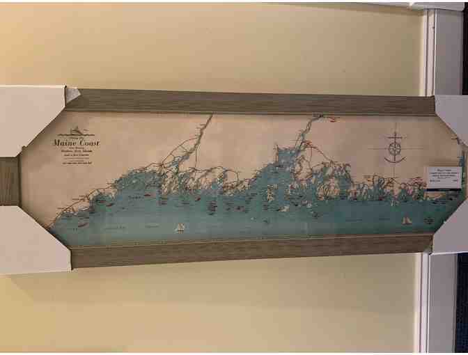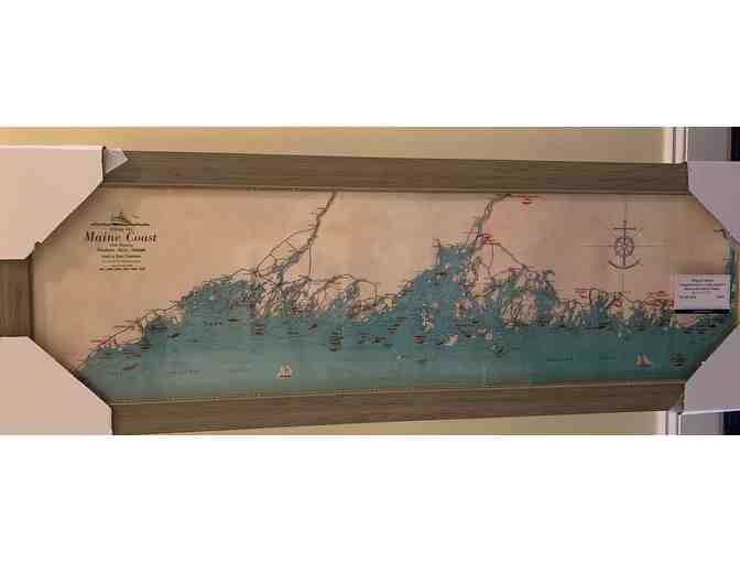 Framed map of Maine coast. A reproduction of an original found in ship captain's chest in Downeast Maine.