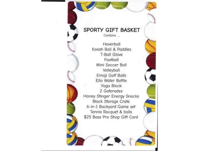 Mrs. Rogers' 1st Grade Class donated this Sporty Gift Basket. Perfect for the active family who loves competition.