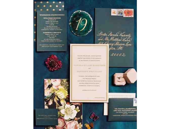 Towards the purchase of any custom order, invitations, stationary or gifts