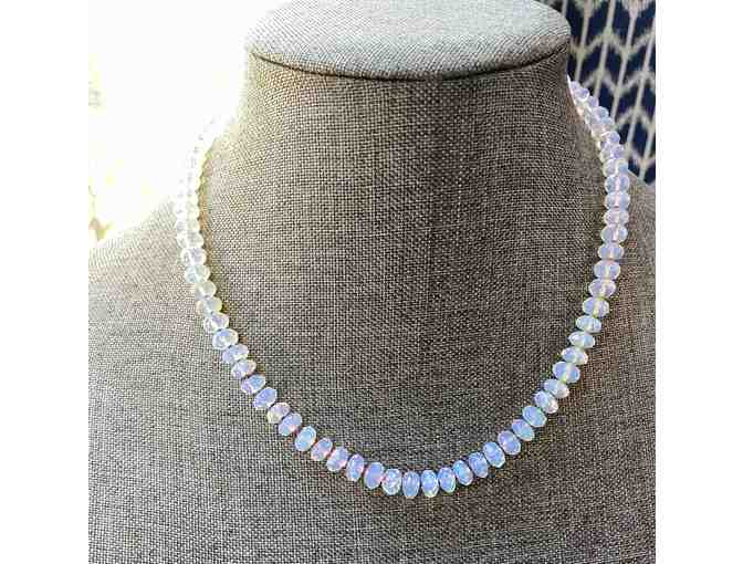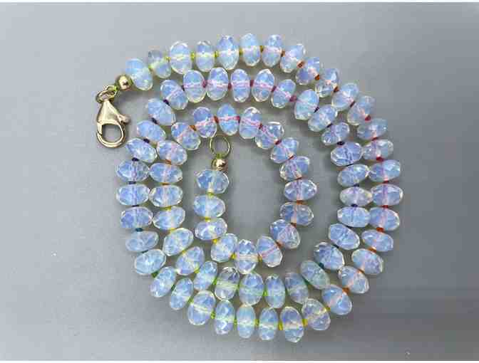 Custom made faceted 8mm Opalite necklace, knotted by hand onto silk cord. Choose from silk cords in a rainbow of bright colors. Rainbow or fluorescent silk cord hand dyed by me. Pick the perfect length for you! Necklace shown in rainbow silk.