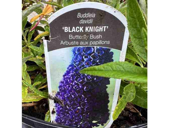 'Black Knight' Butterfly Bush’s deep purple blooms create a stunning contrast to its dark green foliage. Intensely fragrant and attractive to pollinators, 'Black Knight' is perfect for planting outside a window for a delightful show of butterflies and hummingbirds. Easy to grow, deer-resistant, and useful when planted as a hedge or privacy screen.