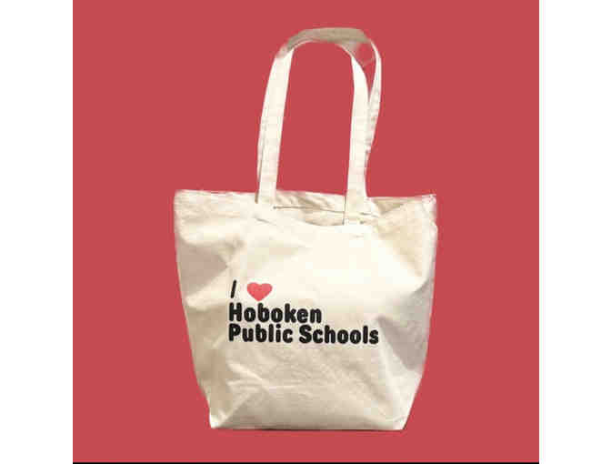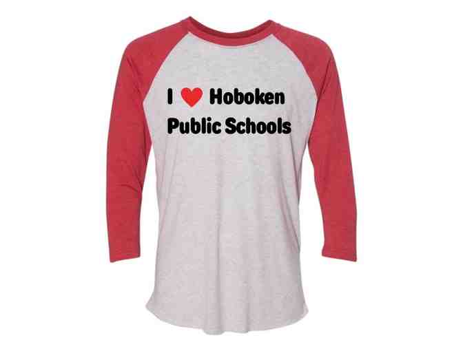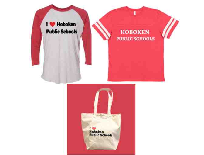 Your favorite shirts together in an I love Hoboken Public Schools tote, raglan tee and varsity tee (both shirts size youth medium)
