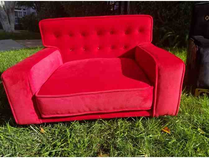 Otto's Empire dog bed- Red crystal buttons, red croc, clear acrylic legs.