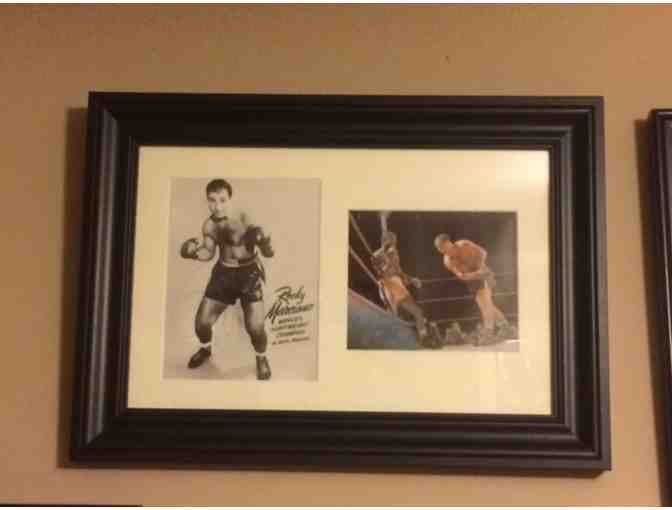 Rocky Marciano Autographed Boxing Display. Comes with certificate of authenticity.
