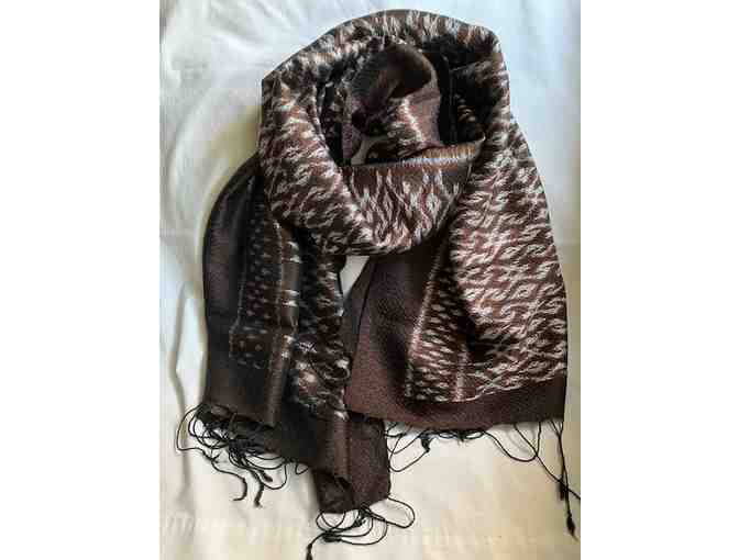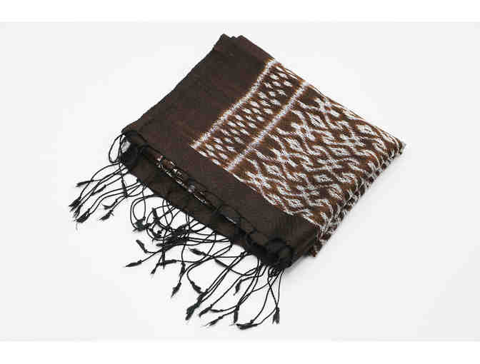 Hand woven silk scarf from Thailand - chocolate with white ikat pattern
