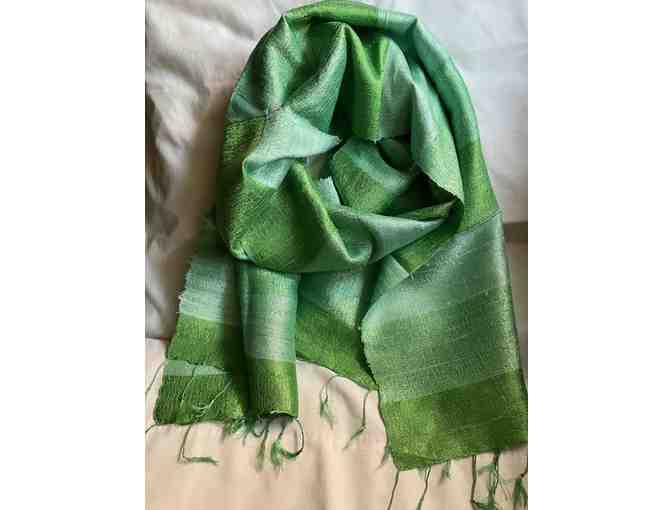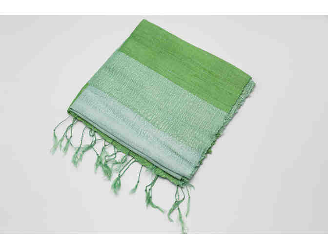 Hand woven silk scarf from Laos - multi shades of spring green