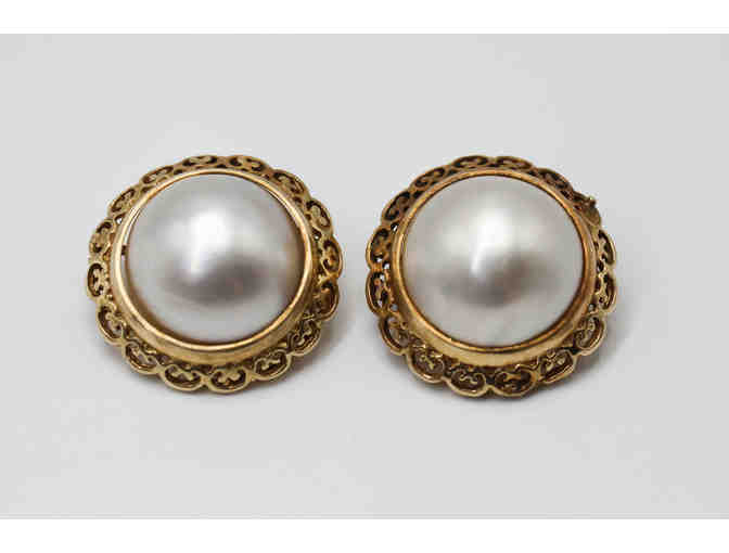 Vintage clip-on mobe pearl earrings in 18k gold