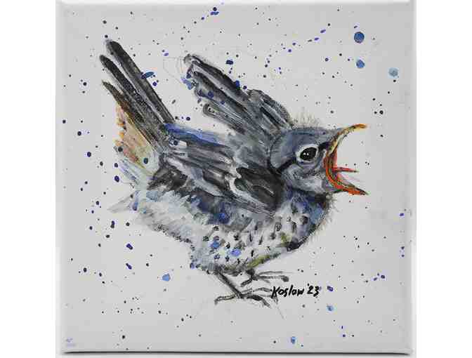 Blue Jay Fledgling - squawking - painting by Esther Koslow