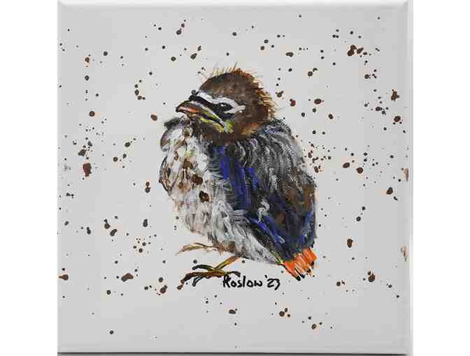 Cedar Waxwing Fledgling - resting - painting by Esther Koslow