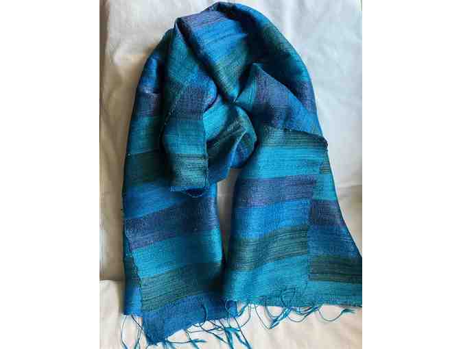 Hand woven silk scarf from Laos - shades of blue