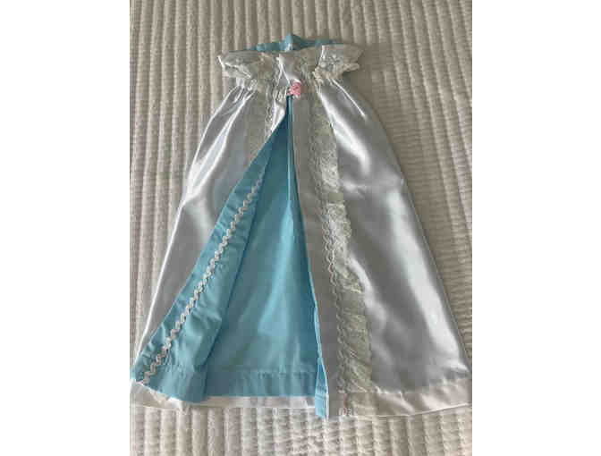 Handmade cape for children's dress up for ages 2-6. The cape is cotton satin and lining with cotton lace and ric-rac. 23" long.