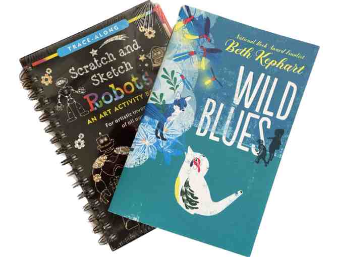 2 Children/Young-Adult Books (ages 12+): Beth Kephart's Wild Blues, a story of a 13 year old's harrowing journey in the Adirondacks to rescue a kidnapped friend and Scratch and Sketch Robots, an art activity book for artisitc inventors of all ages!