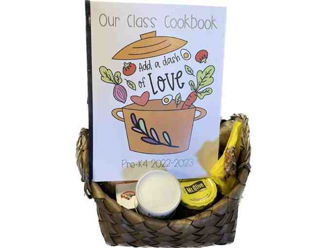 Miss Emma's Preschool Cookbook and Ingredients Basket! Enjoy recipes (and chef photos) in the Pre-K4 cookbook Add a Dash of Love) and some food essentials for making childrens' favorite dishes and desserts
