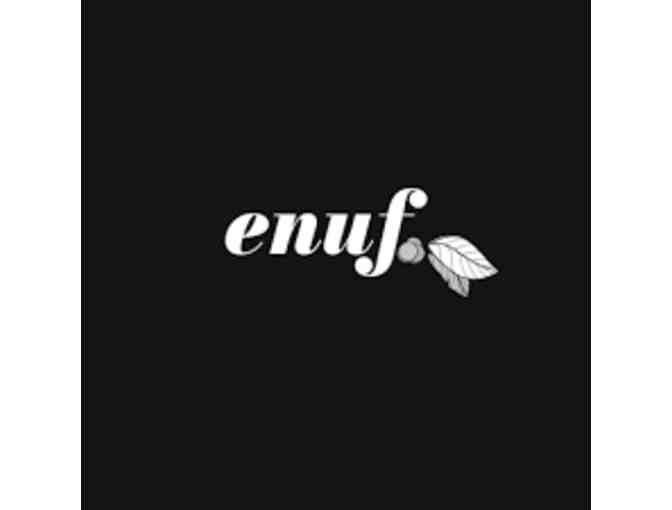Enuf Gourmet Box, including crackers, sauces, and syrups. Value: $50