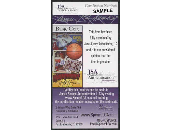The lot / autograph(s) includes an official James Spence Authentication (JSA) hologram and matching COA, as well as an official Beckett Authentication Services serially numbered hologram for authenticity purposes.