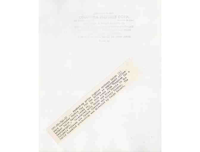 DESCRIPTION: This is a group of 19 production stills each measuring 8x10 in a variety of scenes. 10 stills have Columbia Pictures tags for regular distribution; 6 stills only have the production code on the front but have Columbia Studios stamp and snipe with scene descriptions on the back; 2 stills have no title on the front but have Columbia copyright tag (one for 1962 and one for 1970); and one is a later promo still with just the title on the front.