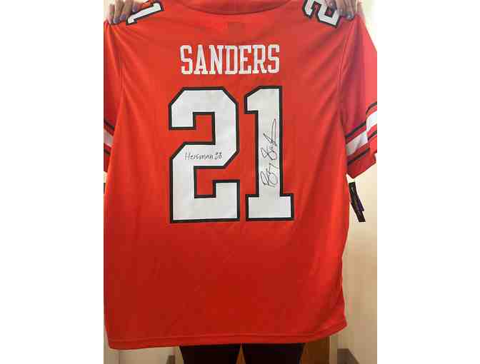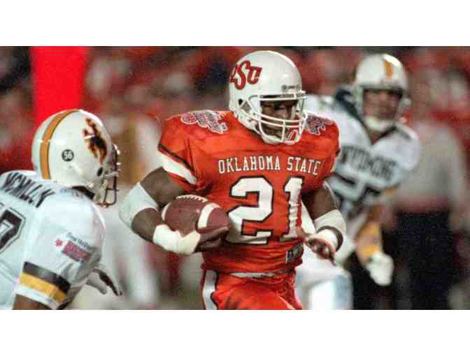 Barry Sanders is an American former football running back who played for the Detroit Lions for 10 seasons. Before the NFL, Sanders played college football for the Oklahoma State Cowboys. He is a Heisman Trophy winner and was the NFL Offensive Rookie of the Year. He is one of the greatest running backs in NFL history and now you can own your very own SIGNED Barry Sanders Oklahoma State University Jersey!
