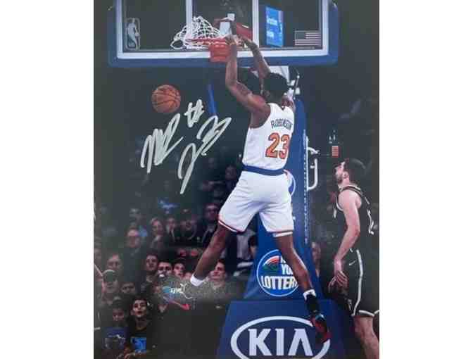Basketball fan? Be sure to bid on this awesome photo signed by Mitchell Robinson himself! Robinson is a basketball player for the New York Knicks.