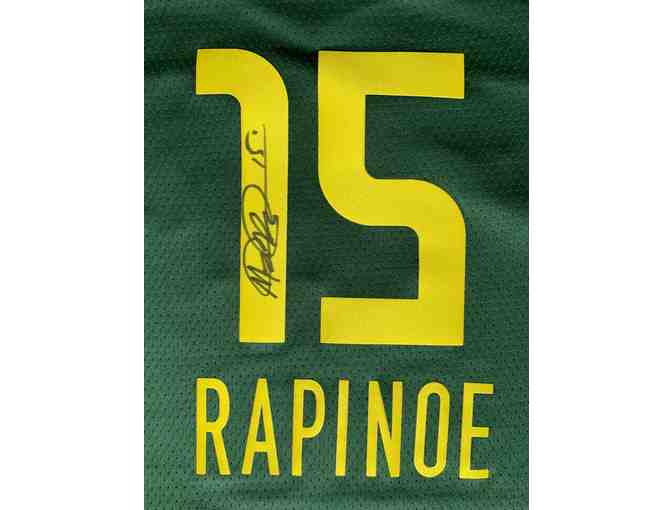 This one of a kind honorary jersey has been donated by Megan to support Kicks for Equality and the Black Future Co-Op Fund! Autographed by Rapinoe post game, this jersey shows her name and soccer number on the back. Size medium.