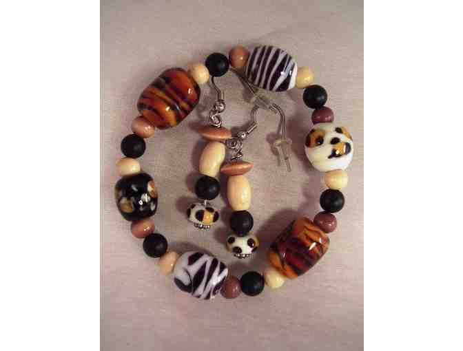 Jungle Stretch Bracelet & Matching Earrings Artisan Jewelry Set