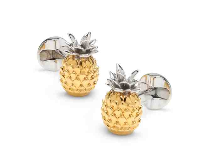 Get ready for some fun in the sun with these tropical 3D pineapple cufflinks. Gold and silver-toned metals sparkle together to form the fruit and leaves, and you'll find the Ox & Bull Trading Company logo stamped on the back of the round swivel closure. Includes individual gift box.